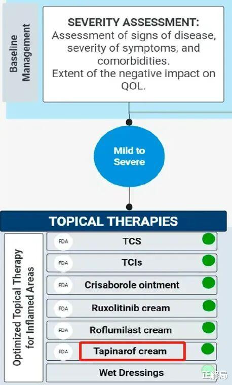 图为AAD指南推荐的轻到重度特应性皮炎治疗方案
